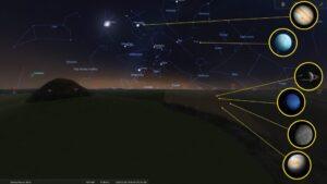 Uran i Neptun formalnie również wezmą udział w tej konfiguracji, jednak ich dostrzeżenie wymaga przynajmniej lornetki, a najlepiej teleskopu i dokładnej mapy nieba. W warunkach miejskich, przy zanieczyszczeniu światłem, identyfikacja tych planet będzie trudna. Dodatkowym wyzwaniem okaże się jasne jeszcze tło nieba – zmierzch ograniczy kontrast słabszych obiektów.