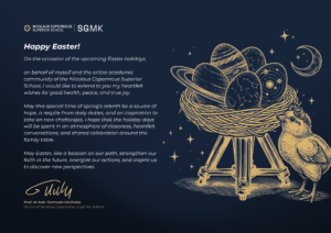 on behalf of myself and the entire academic community of the Nicolaus Copernicus Superior School, I would like to extend to you my heartfelt wishes for good health, peace, and true joy.