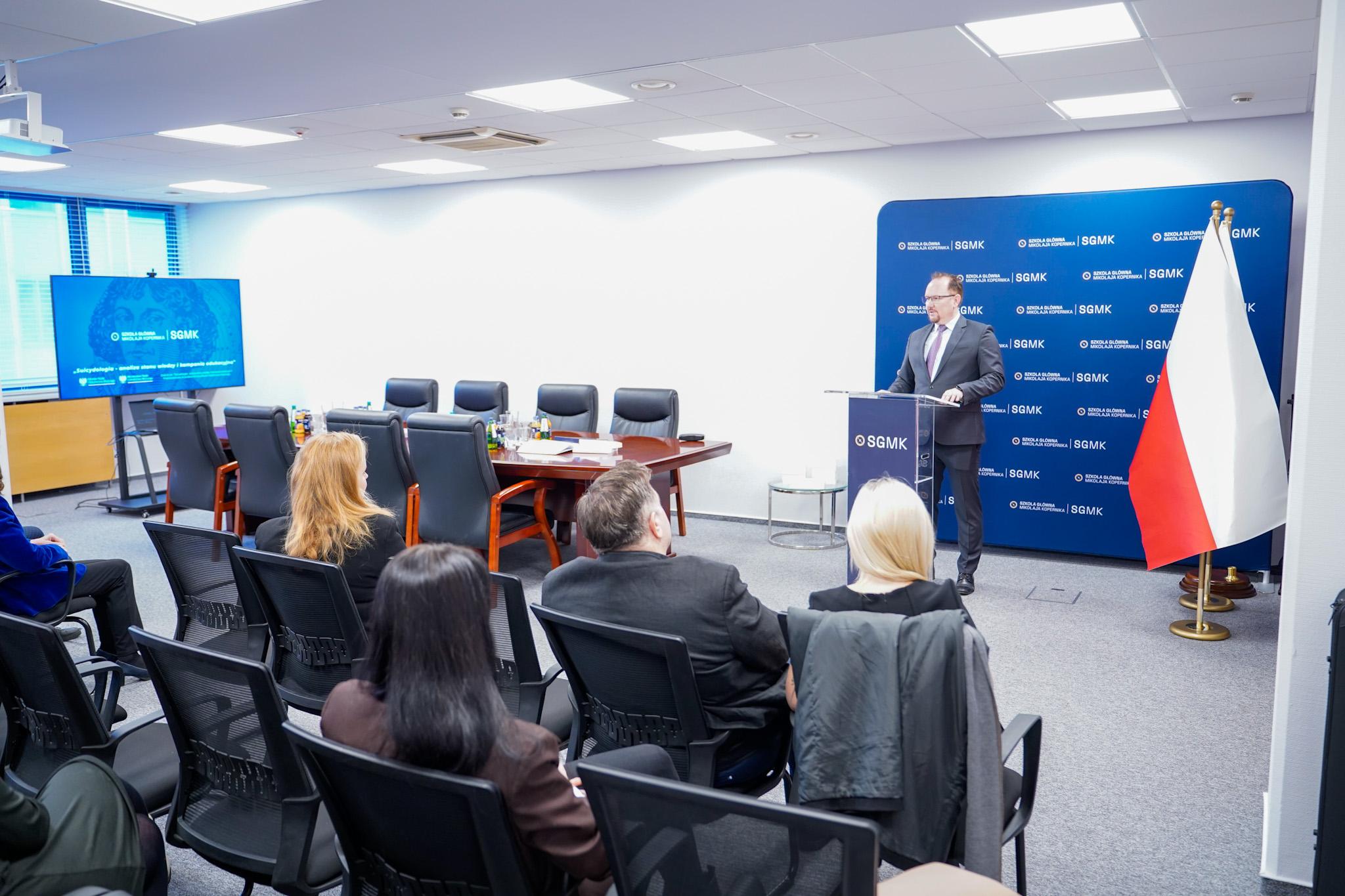 15 stycznia 2026 r. w Szkole Głównej Mikołaja Kopernika w Warszawie odbyło się uroczyste zakończenie dwuletniego projektu „Suicydologia – analiza stanu wiedzy oraz kampania edukacyjna”, finansowanego ze środków Ministra Nauki i Szkolnictwa Wyższego. W spotkaniu udział wzięli członkowie Zespołu Doradczego z przewodniczącą prof. dr hab. Gertrudą Uścińską, Rektor SGMK, Kanclerz SGMK Wojciech Kondrat, a także przedstawiciele zespołów badawczych i organizacyjnych uczelni.