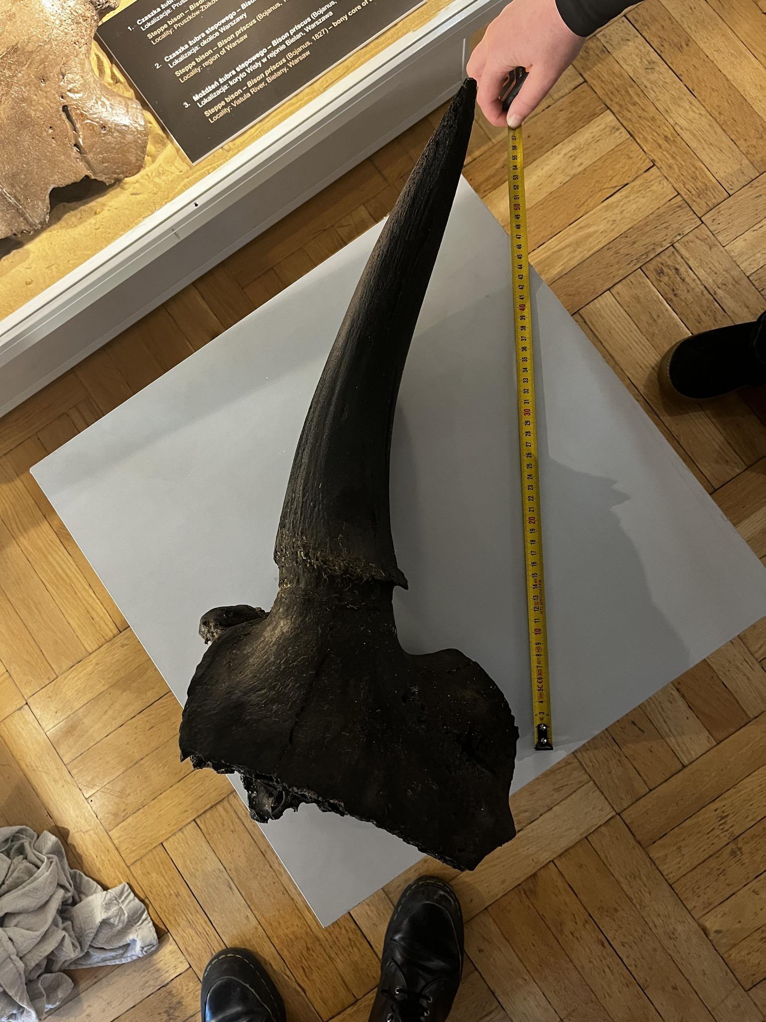 Photo: Earth Museum in Warsaw Initially, it was thought that the find might be the remains of an extinct aurochs, but detailed analyses conducted by the Earth Museum staff confirmed that it is part of the skull of the steppe bison. Experts emphasize that the discovery is of great scientific importance because the remains of this species are rare and provide an important source of knowledge about Pleistocene fauna.