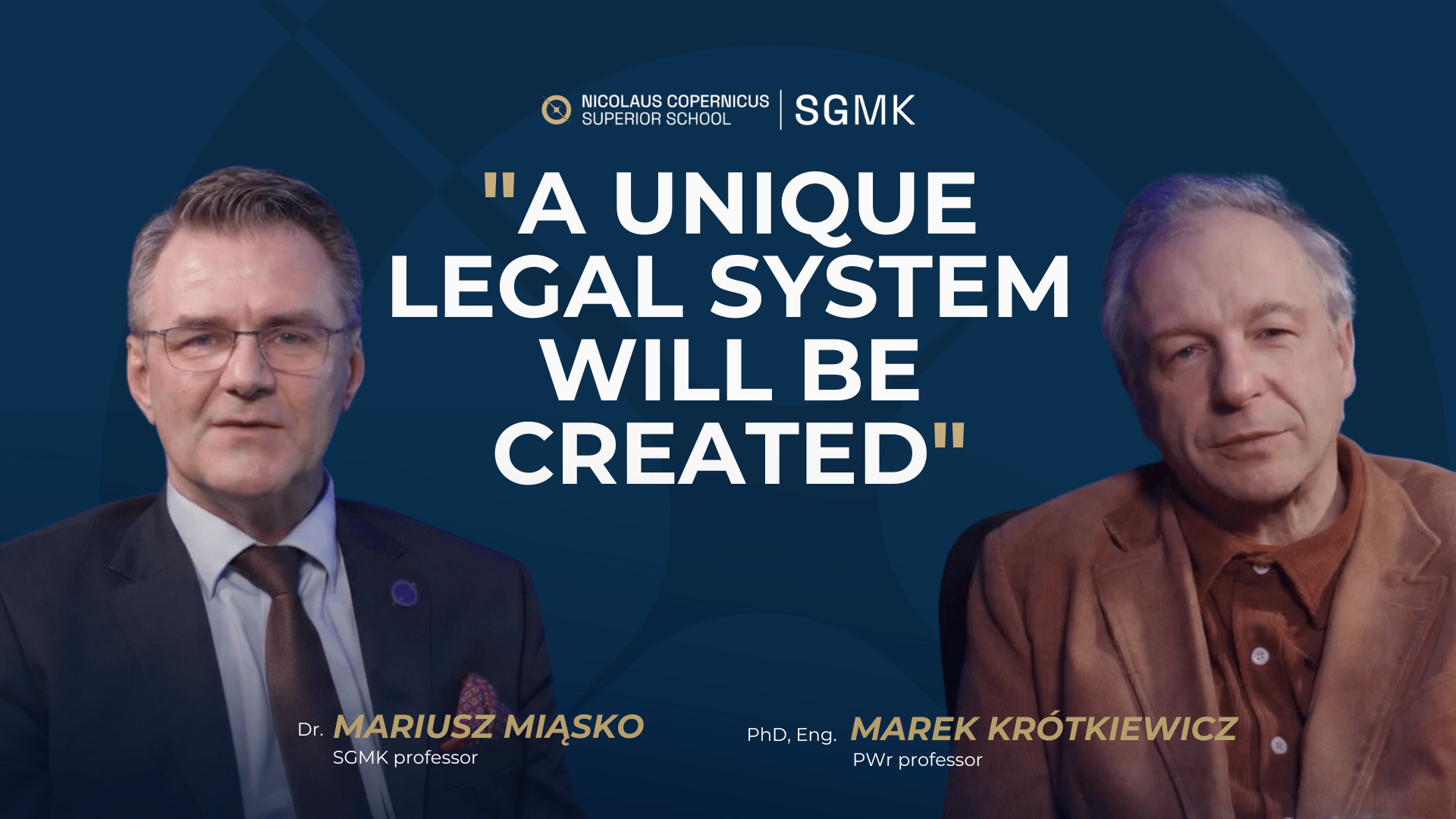 A new podcast featuring experts Dr. Mariusz Miąsko, lawyer, and Prof. Marek Krótkiewicz, PhD, engineer, is now available on the YouTube channel of the Nicolaus Copernicus Superior School. In the material, they present their original and interdisciplinary concept of the deterministic process of legal interpretation and semantic representation of law (Vera Semantica Juris), which aims to increase the predictability of the legal system.
